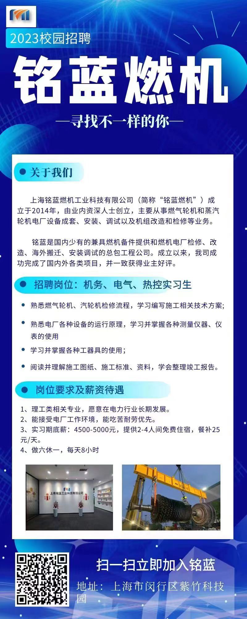 【招聘】上海銘藍燃機工業科技有限公司 誠聘!