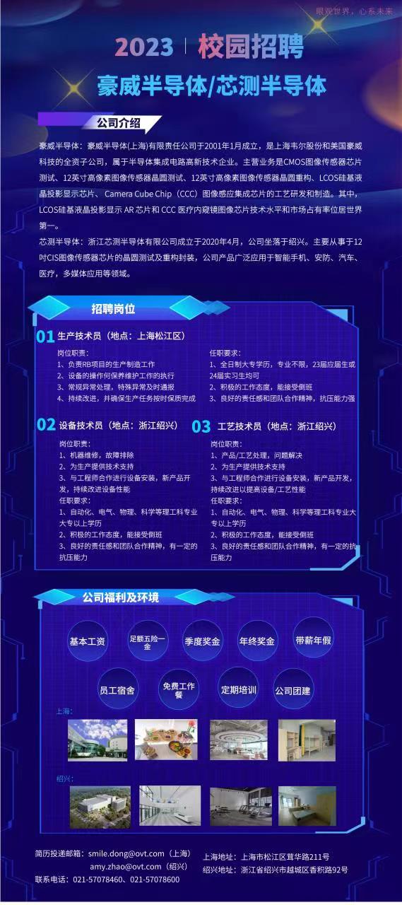 【招聘】豪威半導體(上海)有限責任公司 誠聘!