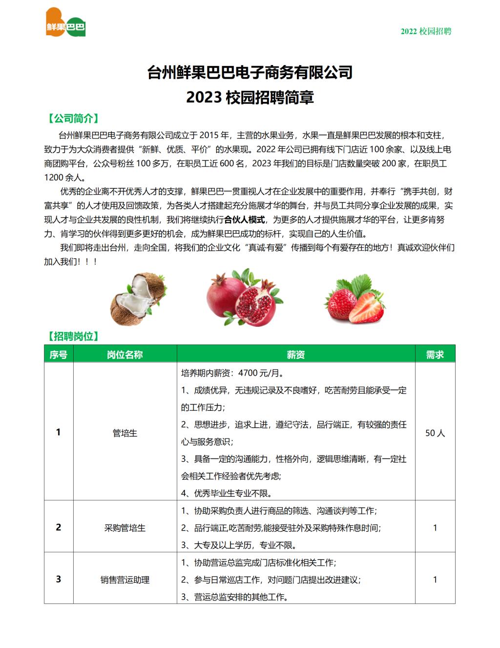 【招聘】臺(tái)州鮮果巴巴電子商務(wù)有限公司 誠(chéng)聘!