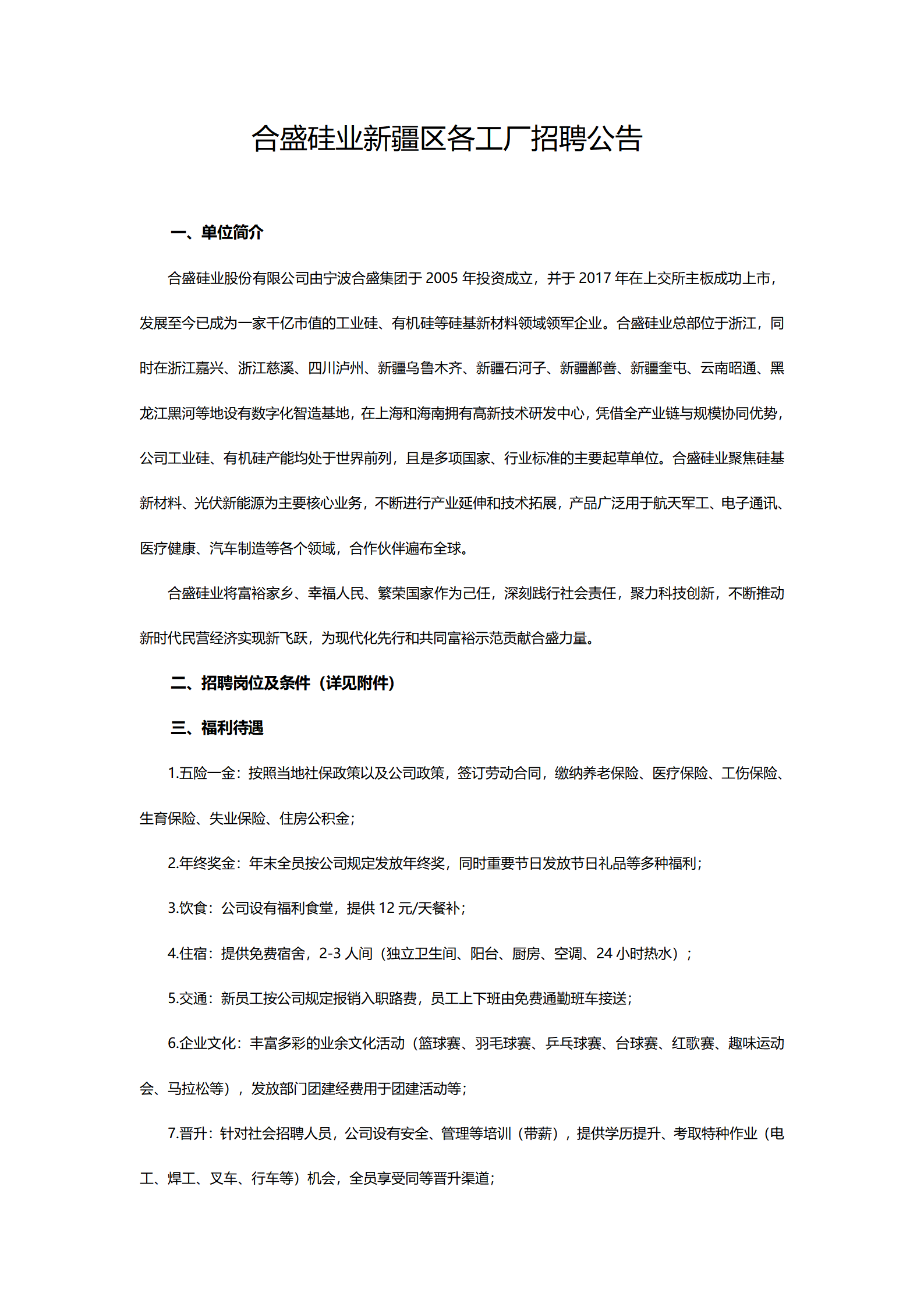 【招聘】合盛硅業(yè)股份有限公司 誠聘!