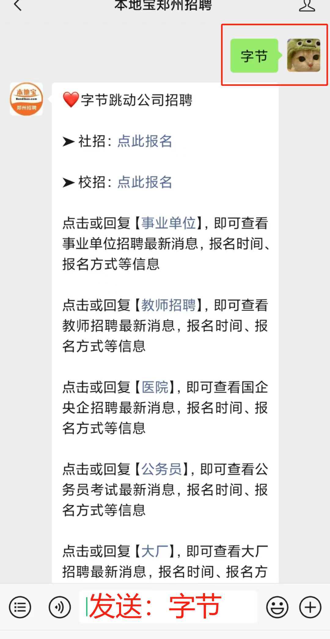 字節(jié)跳動招聘官網(wǎng),也可掃描下方二維碼關(guān)注【本地寶鄭州招聘】微信公眾號并在對話框回復【字節(jié)】即可獲取報名入口。