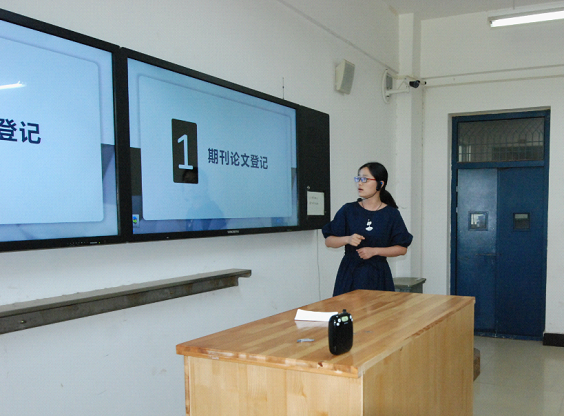 袁淑華老師強調在科研管理云平臺登記科研成果時的注意事項