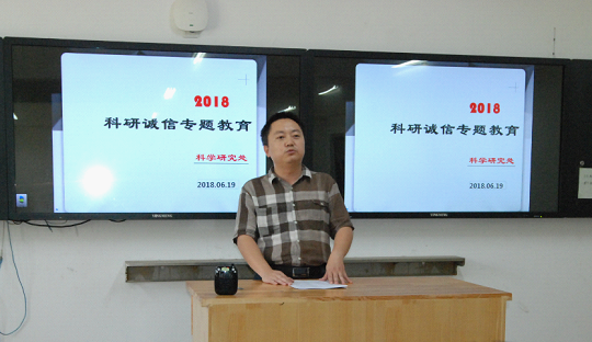 6月19日下午3:30,河南工業貿易職業學院科學研究處在3號教學樓3103教室舉辦了一場針對教科研人員的科研誠信教育活動。該活動舉辦的宗旨是弘揚學術正氣、營造積極健康、和諧創新的學術氛圍。主管學院科研工作的王鉻副院長親臨活動現場并發表講話,參加專業技術人員100余人,大家都滿懷熱情,收獲滿滿。參會現場,大家共同學習了《河南工業貿易職業學院學術規范制度及學術不端行為處理辦法(試行》(豫工貿院字[2018]33號);同時科學研究處的錢薇、賴巧琳、袁淑華老師還詳細地向大家介紹了省職稱評審文件中有關科研部分的主要內容;《學報》投稿注意事項;學院科研獎勵文件;課題申報、期中管理、結項時的注意事項;科研管理云平臺登記時的注意事項等。活動最后,每位參會人員都在《科研誠信承諾書》上鄭重地簽上了自己的名字,承諾自覺遵守學術道德,弘揚學術正氣,做合格的專業技術人員。