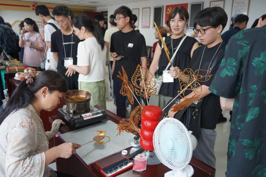 活動現場,我校精心打造“非遺展示”與“非遺體驗”兩大互動板塊,讓日本青年全方位感受中華傳統文化的獨特魅力。日本大學生體驗了吹糖人、糖畫、嫘祖蠶絲等非遺項目,我校非遺傳承人段一珂老師帶領學生開展翡翠雕刻技藝展示與互動教學。