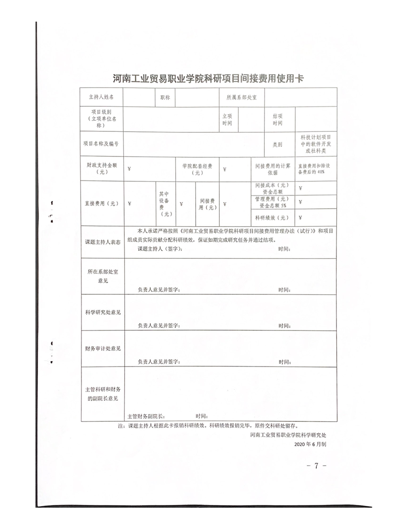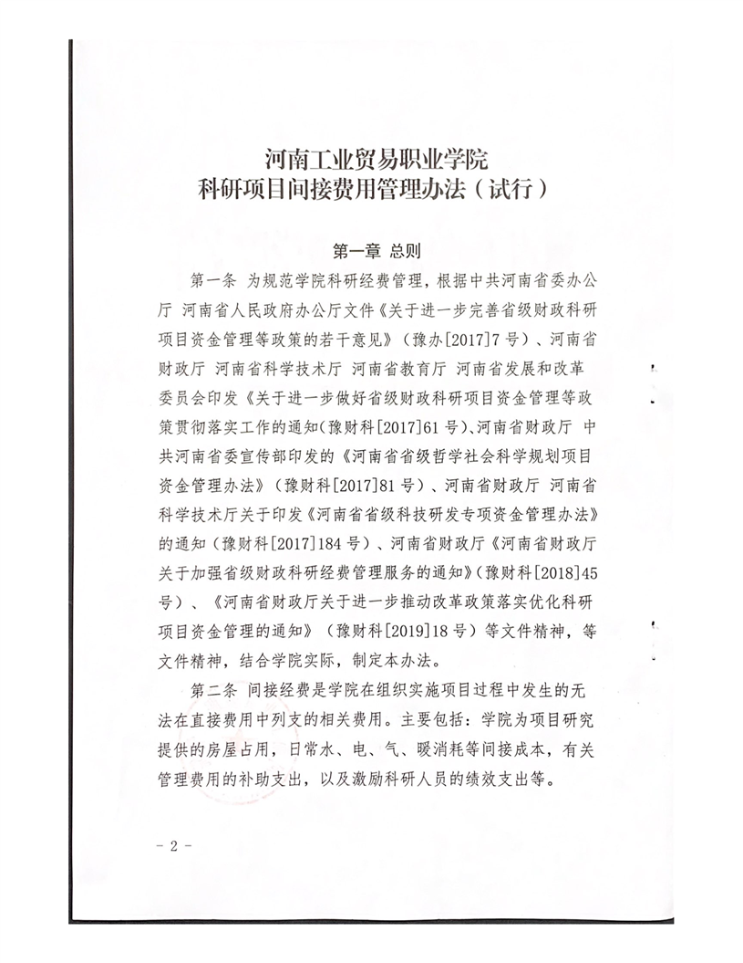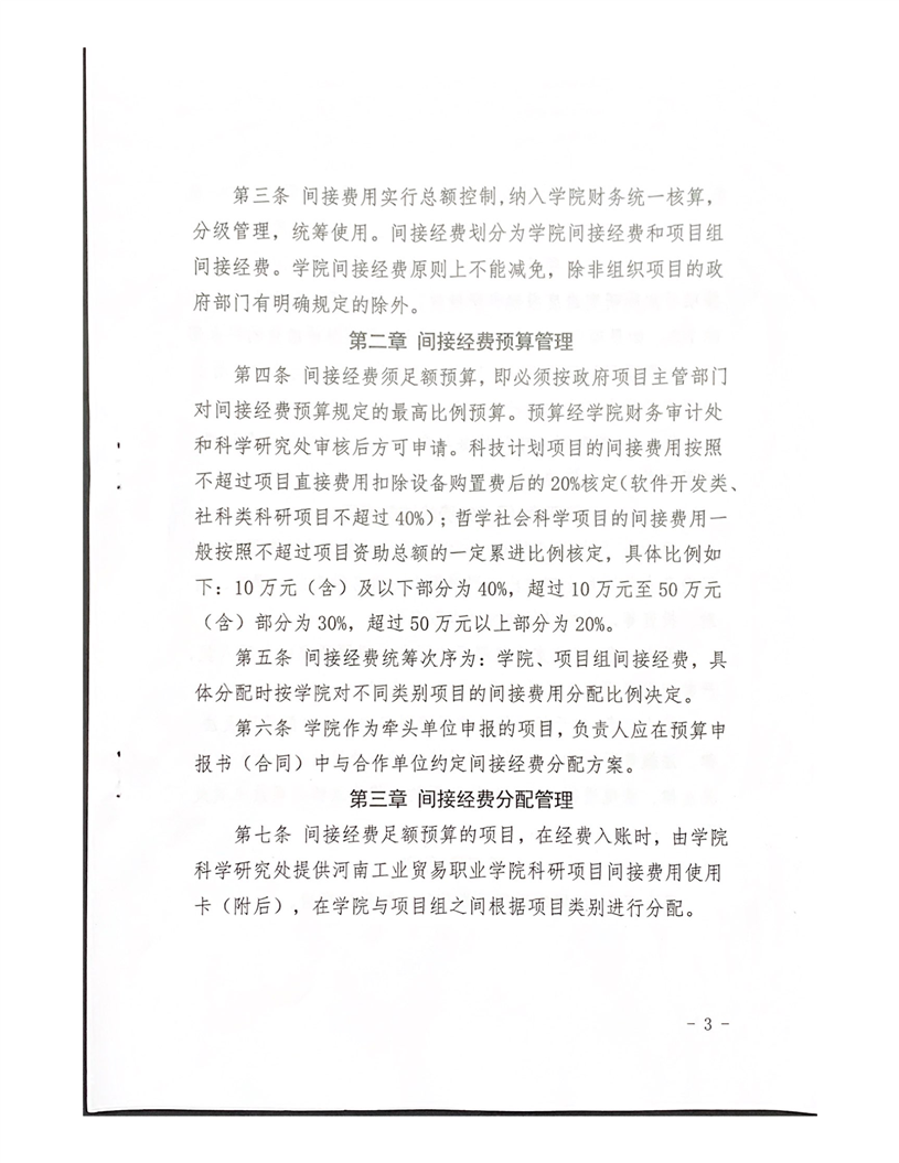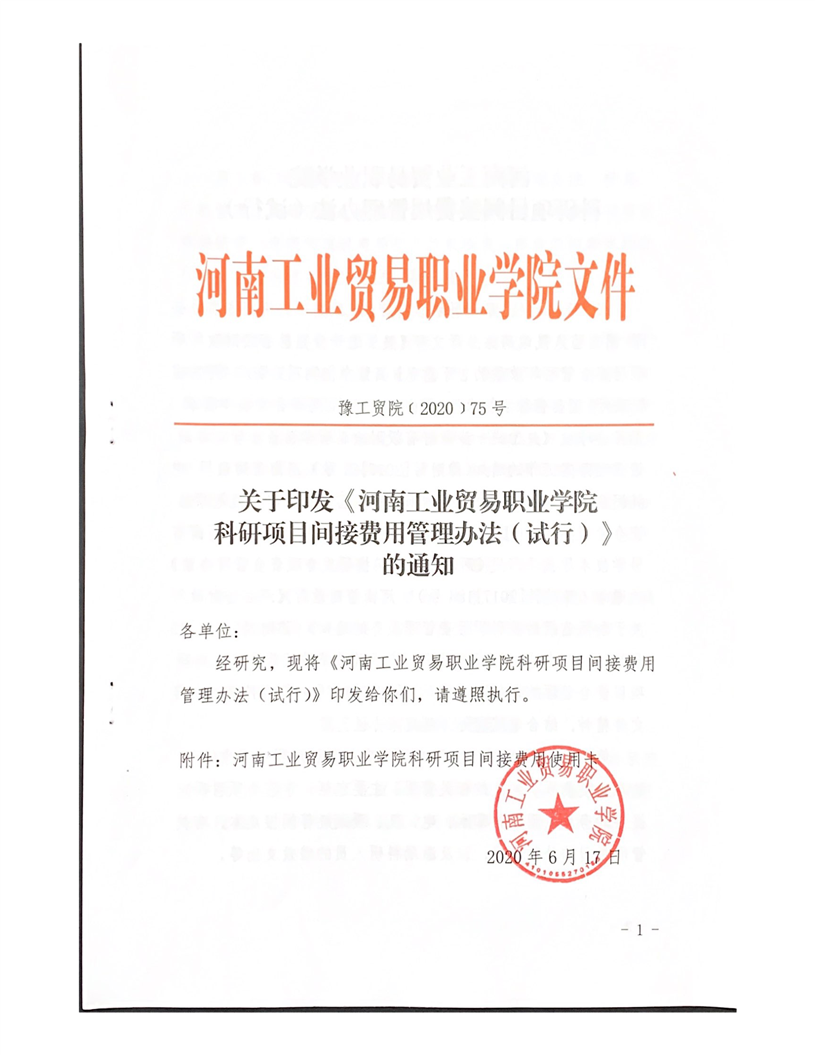 關于印發《河南工業貿易職業學院科研項目間接費用給管理辦法(試行)》的通知