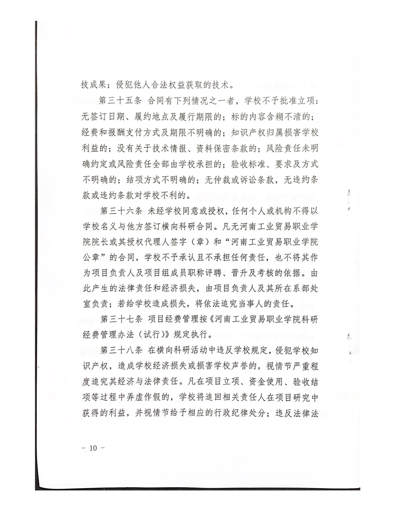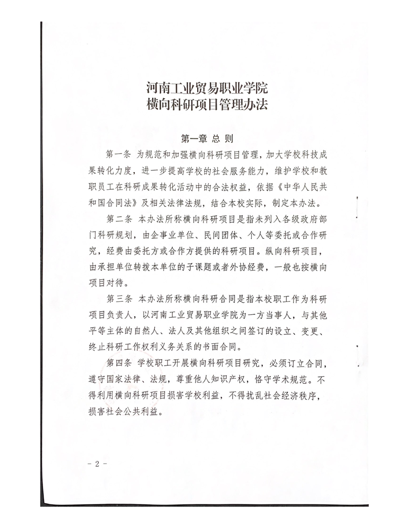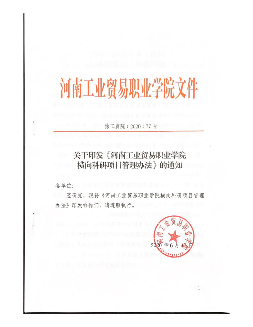 關于印發《河南工業貿易職業學院橫向科研項目管理辦法》的通知