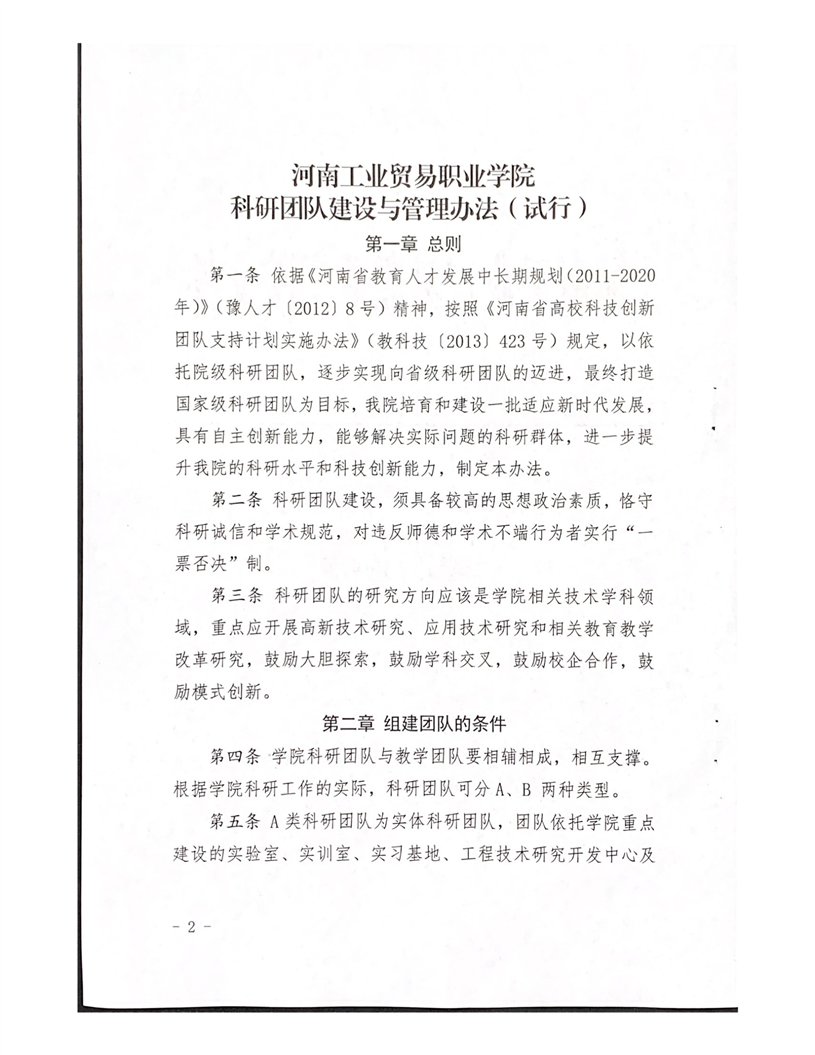 河南工業貿易職業學院關于印發《科研團隊建設與管理辦法(試行)》的通知