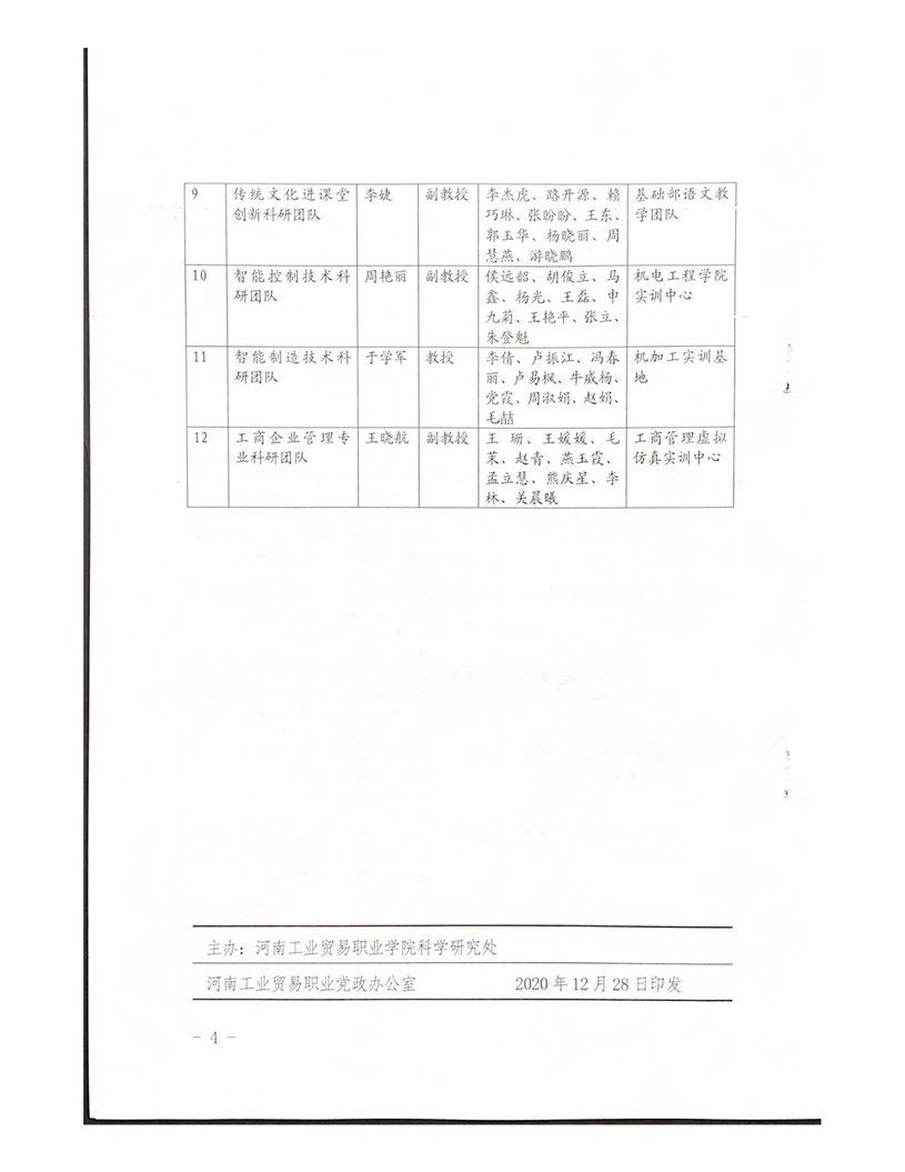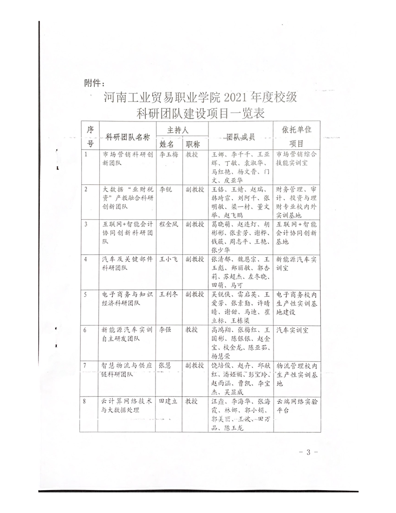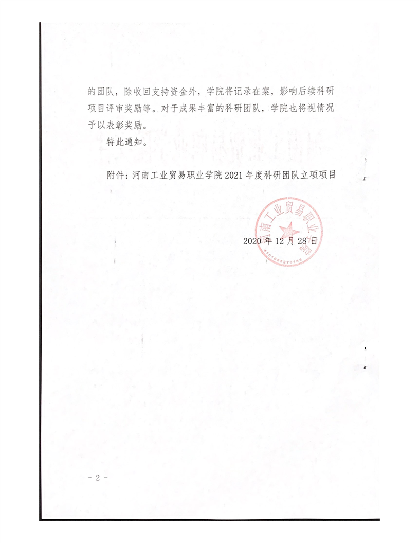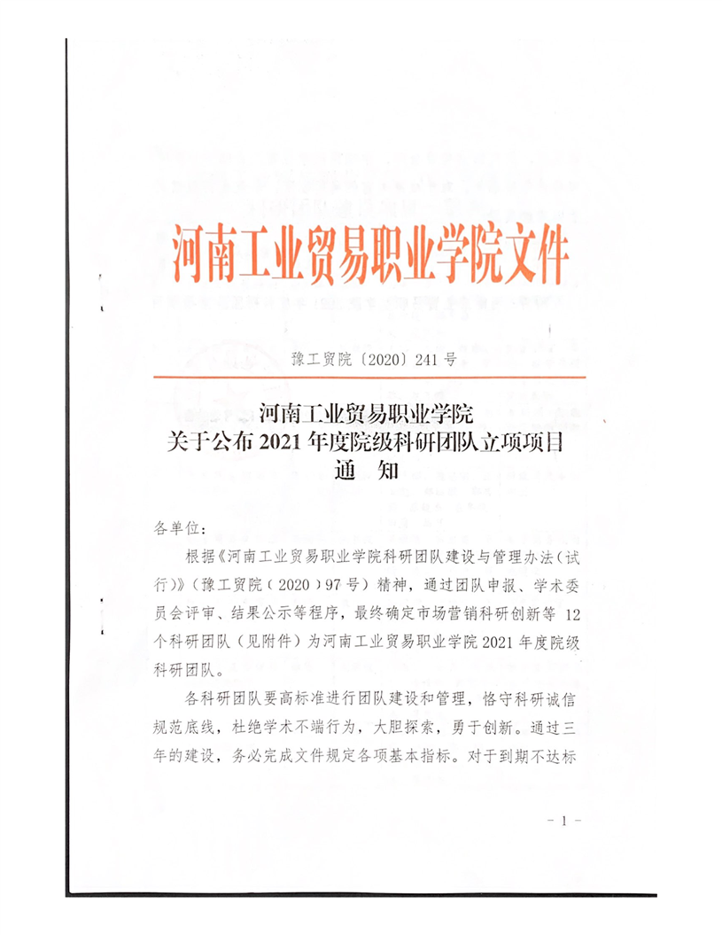 河南工業貿易職業學院關于公布2021年度院級科研團隊立項項目通知
