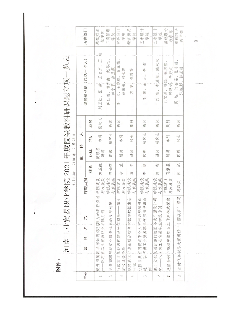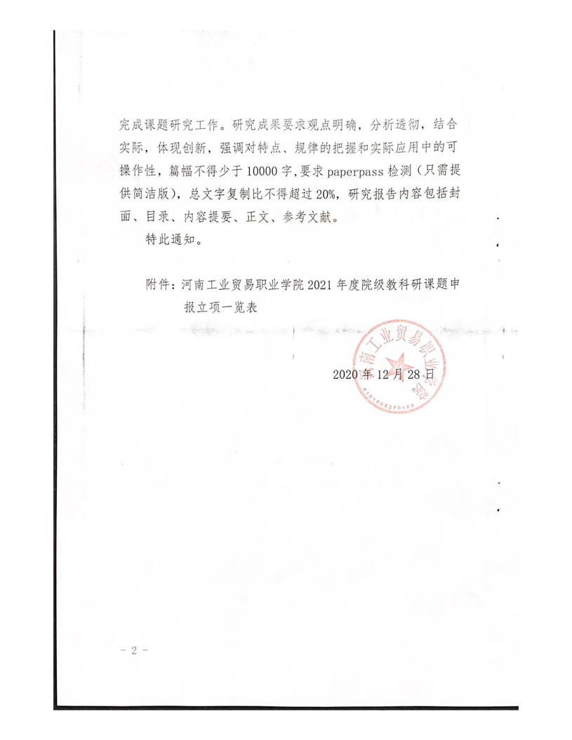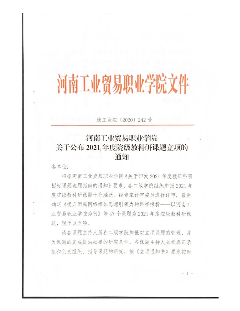 河南工業貿易職業學院關于公布2021年度院級教科研課題立項的通知