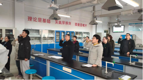 決議形成后,由學生黨支部組織委員侯金麗同志帶領林小娃同志入黨宣誓!