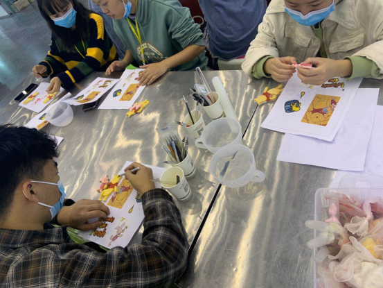 與裱花師溝通交流,“初生牛犢不怕虎”,同學們現(xiàn)場動手制作蛋糕。