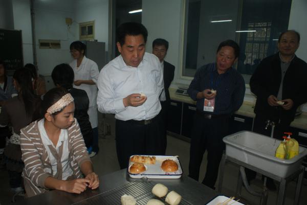 在整個(gè)調(diào)研過程中,劉副省長糧食專業(yè)的建設(shè)表示出高度的關(guān)注。他指示,河南工業(yè)貿(mào)易職業(yè)學(xué)院糧食類專業(yè)的基礎(chǔ)條件比較好,設(shè)備儀器也比較完備,有不少處于國內(nèi)先進(jìn)水平,特別是能夠?qū)Z油轉(zhuǎn)基因成分進(jìn)行測定的熒光定量PCR等先進(jìn)儀器設(shè)備,應(yīng)該充分利用,開展科學(xué)研究,更好地服務(wù)社會(huì)。在烘焙蒸煮實(shí)訓(xùn)室,劉副省長和隨行人員很有興趣地品嘗了學(xué)生制作的面包、饅頭,指示學(xué)院要加大校企合作力度,進(jìn)行“校中廠”等模式的探索,為主食產(chǎn)業(yè)化培養(yǎng)更多的高技能人才。劉副省長也向多位老師詢問學(xué)生就業(yè)去向,就業(yè)形式。了解到糧食專業(yè)類學(xué)生自主創(chuàng)業(yè)成功的案例后,他指示學(xué)院領(lǐng)導(dǎo)要抓好這一類典型,把這些創(chuàng)業(yè)成功者請回來,向在校生傳授經(jīng)驗(yàn)。