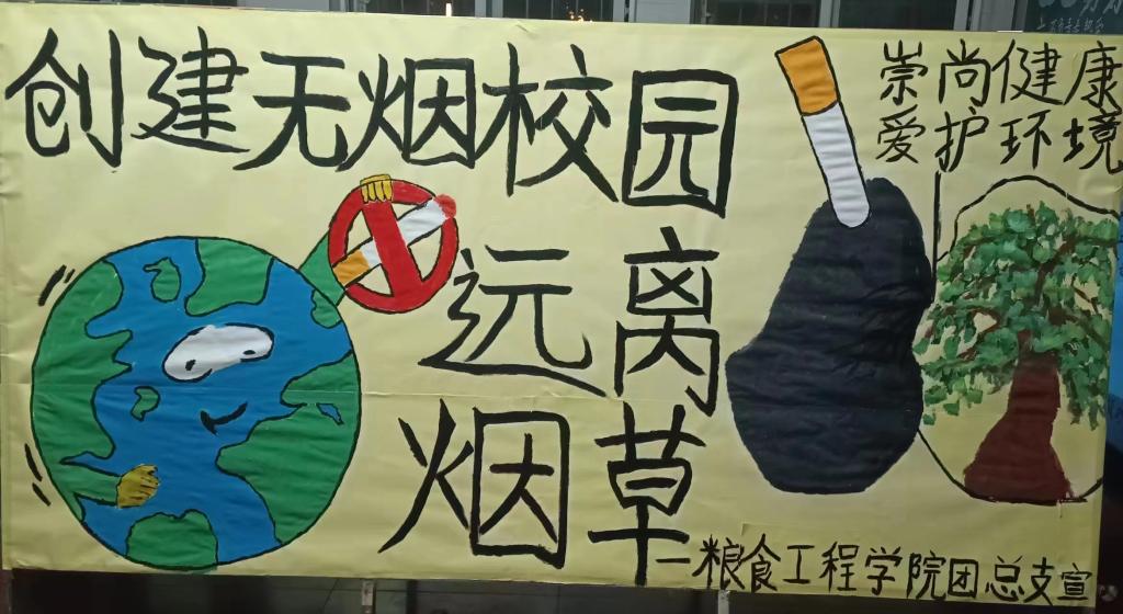 同學(xué)們緊扣禁煙主題,充分發(fā)揮想象力,采用新穎的繪畫(huà)方式,靈活運(yùn)用各種色彩,將煙草、地球、標(biāo)語(yǔ)等元素巧妙結(jié)合,創(chuàng)造出了獨(dú)具新意的展板作品,充分展現(xiàn)了糧工學(xué)子昂揚(yáng)向上的精神風(fēng)貌。