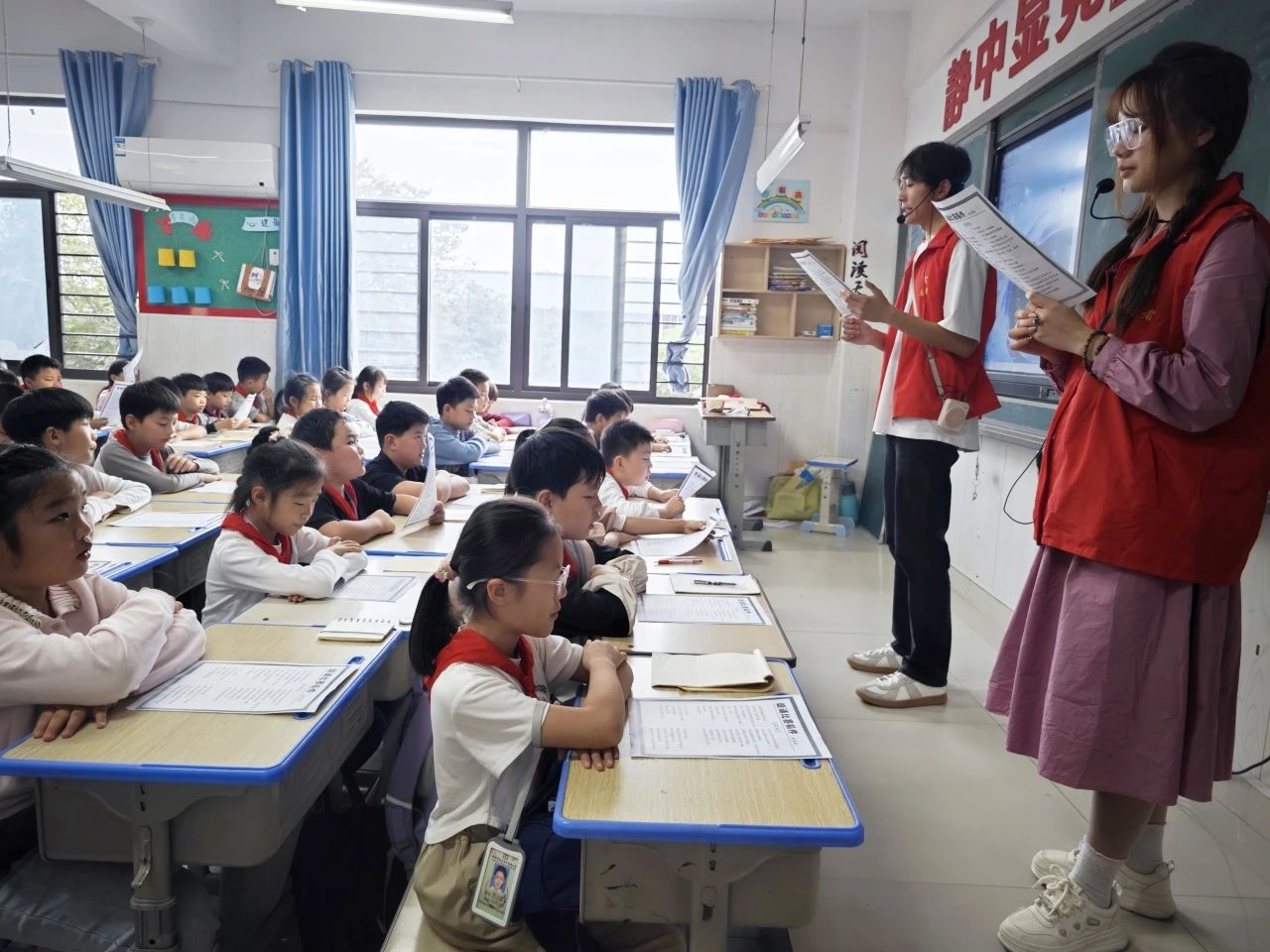 為深入貫徹黨的二十屆三中全會精神,組織團員青年廣泛開展基層學習宣講活動,進一步加強青少年的愛國主義教育,更好地理解和傳承紅色基因,珍惜當下生活,根據學校《共青團河南工業貿易職業學院關于做好黨的二十屆三中全會精神學習宣傳的通知》文件要求,結合我院工作實際,院團總支于10月11日下午在紅河谷小學開展了紅色詩歌第一期宣講活動。