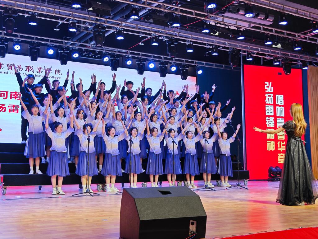 比賽當天,我院的同學們精神抖擻、意氣風發地登上舞臺。他們身著整齊的服裝,眼神中滿是自信與堅定。隨著激昂的前奏奏響,《保衛黃河》的歌聲響徹全場。同學們用飽滿的熱情、洪亮的嗓音,將歌曲中的磅礴氣勢展現得淋漓盡致。歌聲中,有黃河奔騰的豪邁,有保家衛國的壯志,更有對雷鋒精神的深刻詮釋。而當《紫荊花盛開》的演唱中,同學們手拉手,以整齊且富有情感的動作展現出香港回歸祖國懷抱的動人情感。本次表演也贏得臺下觀眾的熱烈掌聲。