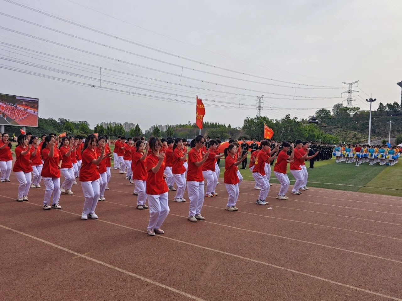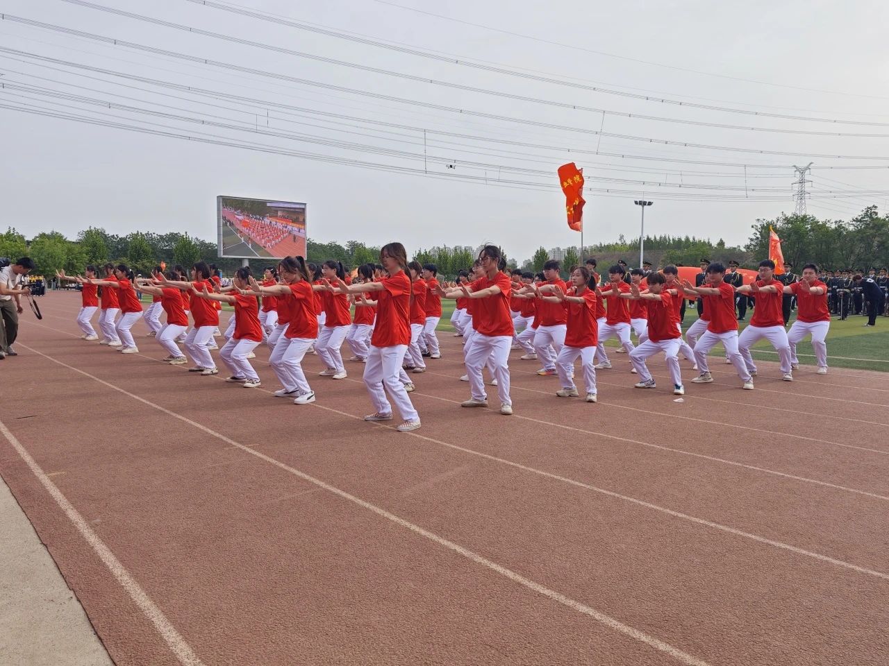 方陣行至主席臺(tái)前,隊(duì)員迅速變換隊(duì)形,隨即以集體拳術(shù)表演震撼全場(chǎng)。為呈現(xiàn)整齊劃一的效果,同學(xué)們利用課余時(shí)間刻苦訓(xùn)練,反復(fù)練習(xí)動(dòng)作要領(lǐng)、整體配合。教練員全程指導(dǎo),嚴(yán)摳細(xì)節(jié),確保每一招式精準(zhǔn)到位、節(jié)奏統(tǒng)一。表演中,隊(duì)員動(dòng)作干凈利落,紅白運(yùn)動(dòng)服與院旗交相輝映,既凸顯專業(yè)特色,更以剛勁有力的拳姿,展現(xiàn)我院學(xué)生“穩(wěn)如磐石、銳意進(jìn)取”的精神風(fēng)貌。