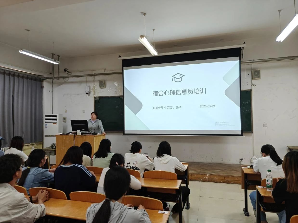 為進一步完善學院心理健康工作網絡,提升宿舍心理信息員的專業素養與服務能力,我院于2025年5月22日開展了由心理專員牛芳芳老師、郭潔老師主講的宿舍心理信息員培訓會。