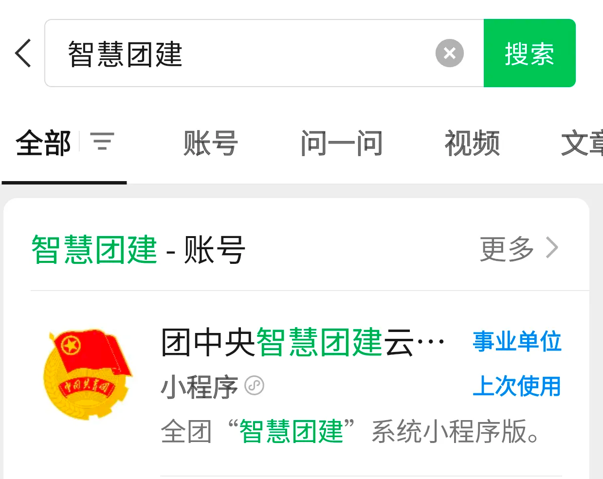 手機端登錄:打開微信,在搜索欄輸入“團中央智慧團建”找到官方小程序。(手機端賬號密碼登錄同上)