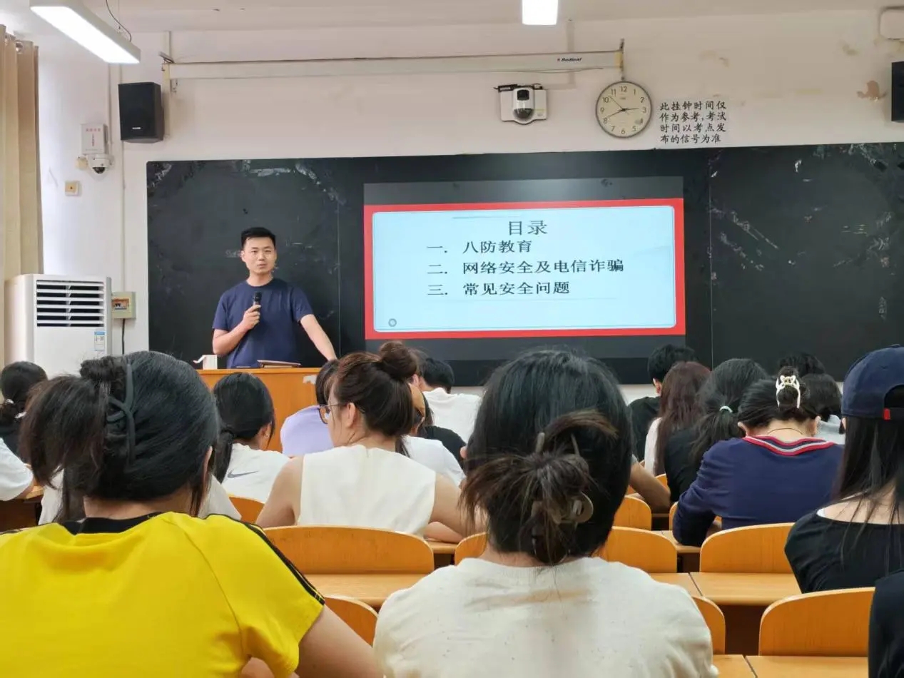 班會緊扣 “食品安全、防詐騙、交通安全、宿舍安全” 核心,聚焦開學季學生安全剛需開展講解。例如我院郭潔老師結合近期校園典型安全案例,以 “安全是新學期第一課” 為核心導向,重點點明本次班會的重要性 —— 安全是學生學習、生活的根本基礎,學生需從思想上徹底杜絕 “僥幸心理”,主動學習并掌握安全知識與應急應對技能,切實將安全意識轉化為自我保護能力。