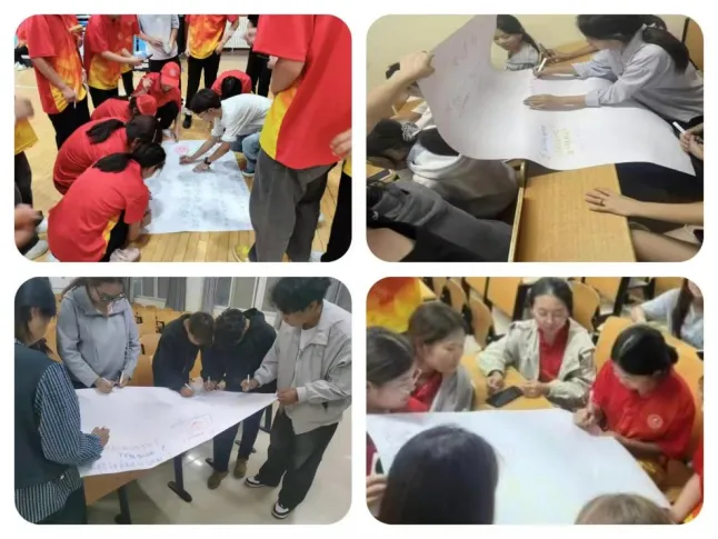 在“大學生活‘酸甜苦辣’”環節,各小組熱烈討論,對未來三年的期待(甜)、對挑戰的預估(酸)、對付出的決心(苦)和對多彩生活的向往(辣)繪成一個個生動的“味道瓶”。在游戲的環節中,同學們對即將到來的學習生活有了更清晰的認知。各班級制定了獨特的班級契約 ,在學習和生活方面許下莊嚴承諾,并鄭重簽下自己的名字。而這份契約,也將成為他們集體榮譽感和歸屬感的起點。