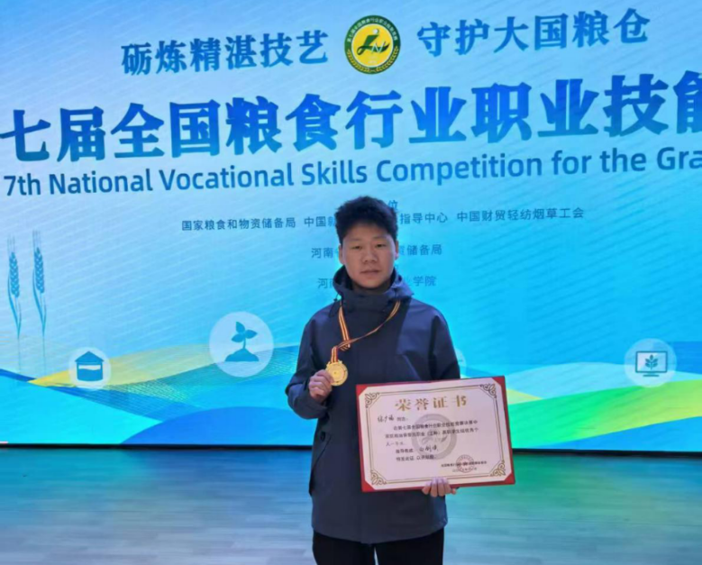 張廣福糧食儲(chǔ)運(yùn)與質(zhì)量安全專業(yè)的學(xué)子,在第七屆全國糧食行業(yè)職業(yè)技能競(jìng)賽中成功從省賽突圍、斬獲全國總決賽榮譽(yù),秉持的是“守護(hù)大國糧倉”的樸素信念。生于許昌鄢陵農(nóng)村的他,自幼目睹祖輩勞作,深知糧食來之不易,家境拮據(jù)的成長經(jīng)歷讓他早早立下護(hù)糧理想。為實(shí)現(xiàn)初心,他每日七點(diǎn)抵達(dá)訓(xùn)練場(chǎng)反復(fù)操作糧油檢驗(yàn)設(shè)備,磨破手指也不停歇;深夜堅(jiān)守實(shí)驗(yàn)室觀察樣品,遇技術(shù)瓶頸便泡圖書館、請(qǐng)教老師、走訪企業(yè),逐步攻克水分測(cè)定、蟲害防治等難題。國家助學(xué)金為他解除了后顧之憂,讓他能心無旁騖深耕專業(yè)。這份從田間生長出的理想,與日夜打磨出的技能,正是青春最扎實(shí)的底色——從農(nóng)家子弟到護(hù)糧尖兵,他以專業(yè)本領(lǐng)筑牢大國糧倉根基,用奮斗證明:把平凡的堅(jiān)守做到極致,便是對(duì)時(shí)代最好的回應(yīng)。