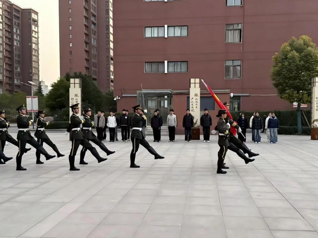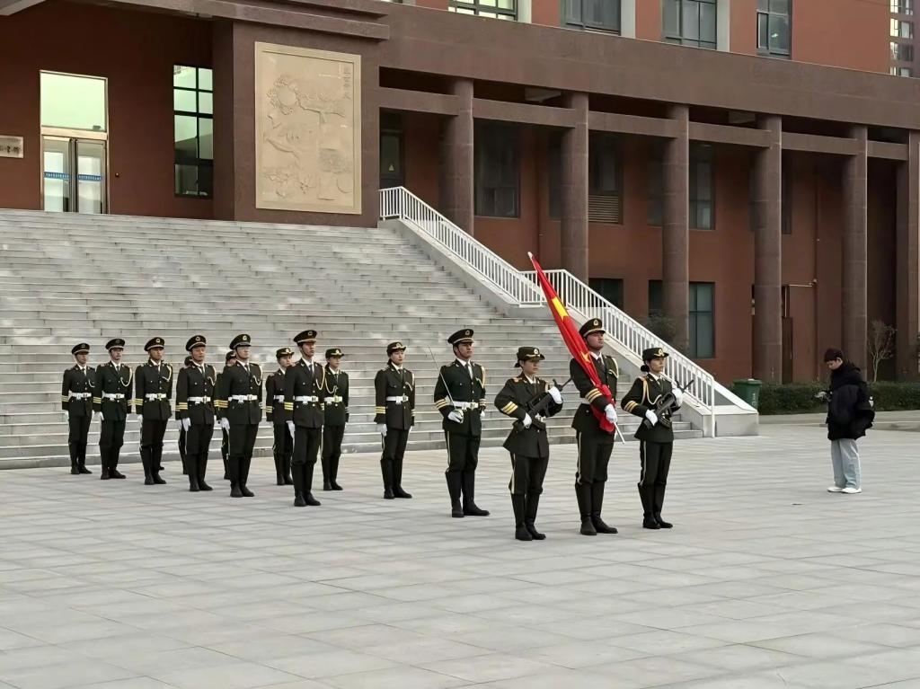 朝陽初綻,學院師生整齊列隊,以飽滿的精神狀態等待儀式開始。國旗護衛隊邁著鏗鏘步伐,護送國旗至旗桿下,隨著莊嚴的《義勇軍進行曲》奏響,五星紅旗冉冉升起,全體師生向國旗行注目禮,歌聲激昂,傳遞著對祖國的崇敬與熱愛。