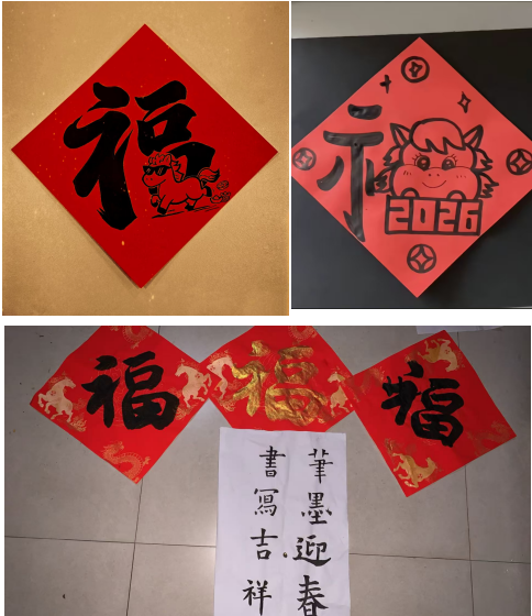 為推動中華優秀傳統文化實現創造性轉化與創新性發展,2026年1月,我院在“傳統文化教育月”期間開展“筆墨迎春,書寫吉祥”書畫體驗活動,活動以線上形式開展,適配寒假學生居家場景,面向24級與25級學生發起號召,吸引同學們積極響應、自主參與,以筆墨書寫“福”字為核心形式,搭建線上展示與交流平臺,踐行傳統文化傳承。