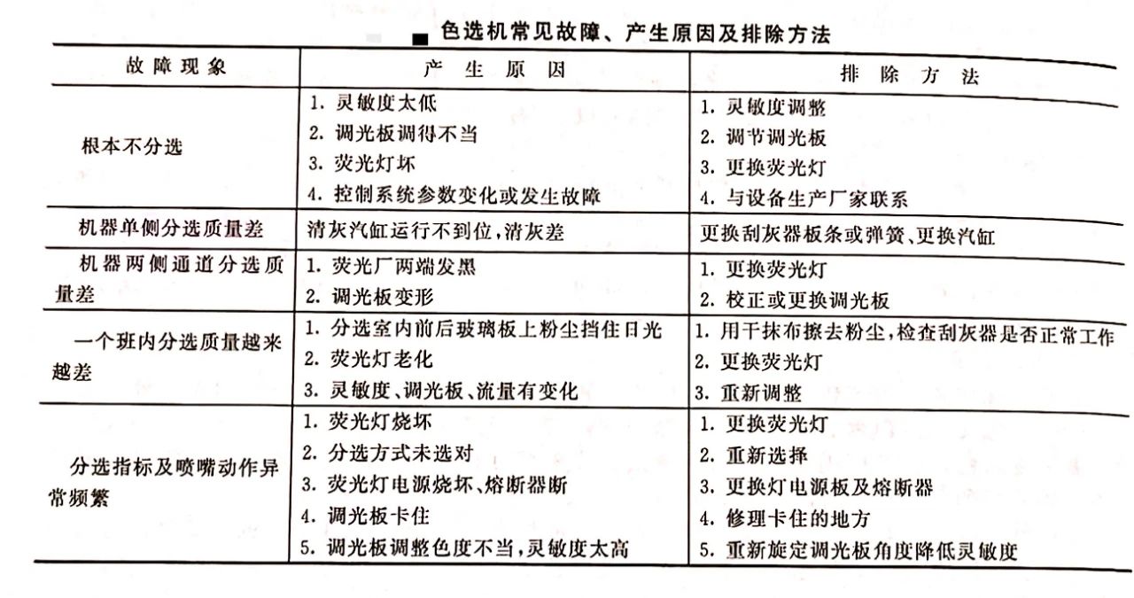 五、色選機的常見故障及排除方法