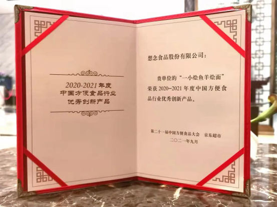 此次大會,想念食品攜旗下特色美食系列燴面、多谷物雜糧系列掛面等明星產(chǎn)品驚艷亮相。其中,一小燴系列之魚羊燴面及老方城燴面在眾多參評產(chǎn)品中脫穎而出,榮獲2020-2021年度中國方便食品行業(yè)優(yōu)秀創(chuàng)新產(chǎn)品。