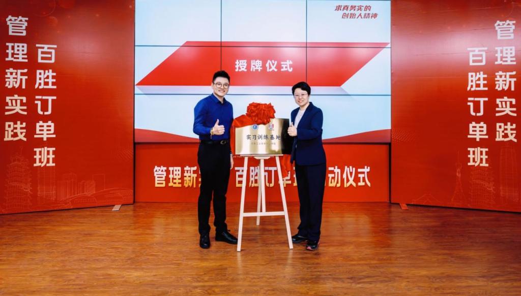 工商管理學院黨總支副書記、副院長張慧和鄭州肯德基有限公司營運經理王振宇為“百勝訂單班”“實習訓練基地”授牌。啟動儀式上,為首批入選訂單班的28名學員頒發錄取通知書。鄭州肯德基人力資源部經理陳娟娟現場解碼百勝中國“職業加速計劃”內核,為學員們講解百勝企業課程設置、實踐安排、激勵舉措。工商管理學院2023級工商管理101班學生代表黃晶瑤發言。