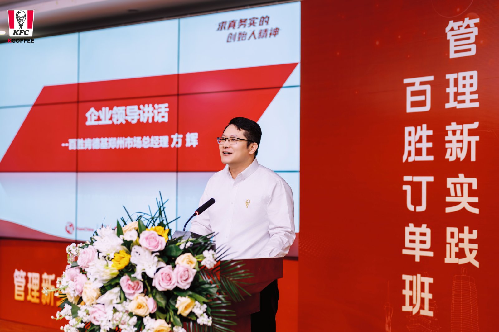曹利強代表校方致辭。他強調,作為河南省雙高校建設單位,我校始終秉持“產教融合、校企合作“的辦學理念。此次與鄭州肯德基有限公司共建“百勝訂單班”的戰略合作,既是落實國家“深化產教融合”政策的重要實踐,更是對接《國家職業教育改革實施方案》關于“形成校企命運共同體”要求的關鍵落子。這一合作不僅實現了校企資源深度互通,更通過“企業標準進課程、技術專家駐課堂、崗位認證融教學”等舉措,為破解產教協同難題提供可推廣經驗。未來學校與鄭州肯德基有限公司將持續加強深化戰略合作,以“招生-培養-就業”一體化閉環機制打造中原餐飲人才供應鏈標桿,通過動態優化課程體系與雙導師聯合培養,持續輸送數字化復合型人才,為鄭州建設國際消費中心城市提供支撐,形成可復制的產教融合示范模式。