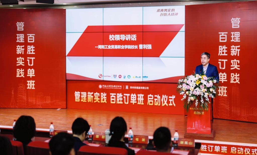 3月24日,我校與鄭州肯德基有限公司校企合作項目“管理新實踐·百勝訂單班”啟動儀式在學校3101報告廳舉行。校長曹利強,副校長劉衛紅,鄭州肯德基有限公司總經理方輝出席啟動儀式。啟動儀式由工商管理學院副院長孟立慧主持。
