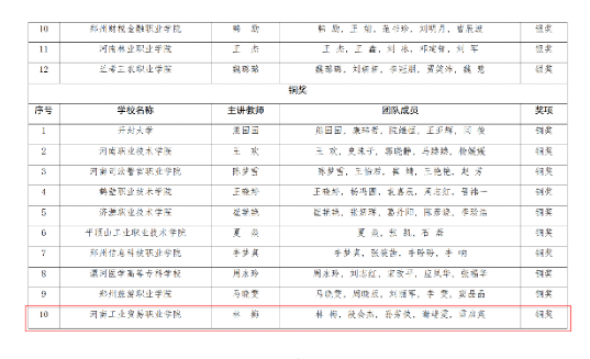 近日,第三屆全國大學生職業(yè)規(guī)劃大賽河南省賽課程教學賽道結果公示,我校林梅、段會杰、孫芳俠、謝靖雯、雷啟英五位教師榮獲職教組銅獎。
