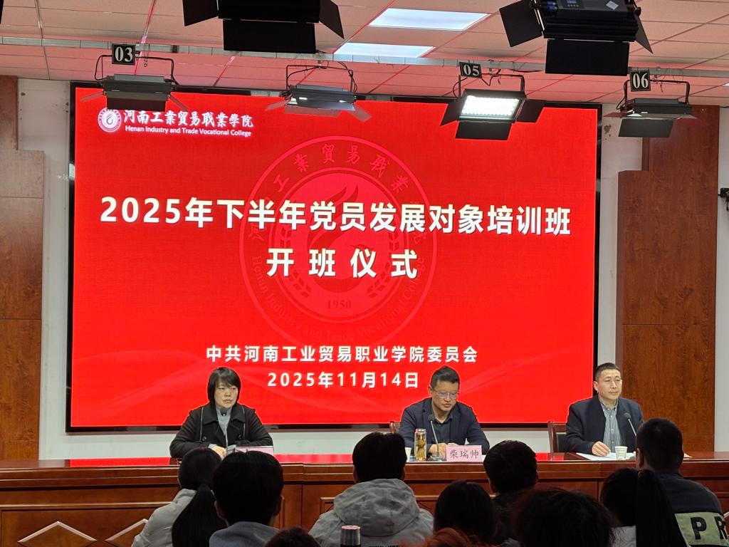 會(huì)上,黨委組織部副部長韓向霞宣讀了《中共河南工業(yè)貿(mào)易職業(yè)學(xué)院委員會(huì)組織部(黨校)關(guān)于舉辦2025年下半年黨員發(fā)展對(duì)象培訓(xùn)班的通知》(豫工貿(mào)院組〔2025〕10號(hào)),全校78名師生黨員發(fā)展對(duì)象參加開班儀式。