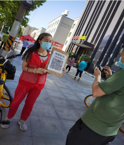 2021年的8月,鄭州市突發新冠疫情,防疫辦以雷霆之勢制定了行之有效的防疫策略,醫生護士踴躍報名再出征,社區工作人員和志愿者們夜以繼日的堅守在抗議第一線。在省局的號召下,周淑娟老師有幸以黨員身份下沉社區參加防疫工作。在新華路辦事處人民路社區防控站點,周淑娟老師負責進出居民的健康碼驗證、體溫測量和外來人員的登記等工作,盡最大可能做好疫情防控工作,保障人民群眾的生命安全。