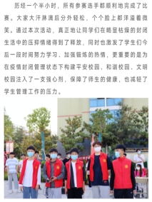 通過一些列豐富多彩的文體活動,不僅調動了學生的積極熱情,還充實了封控期間在校大學生的生活,進一步促進學生身心健康發展。