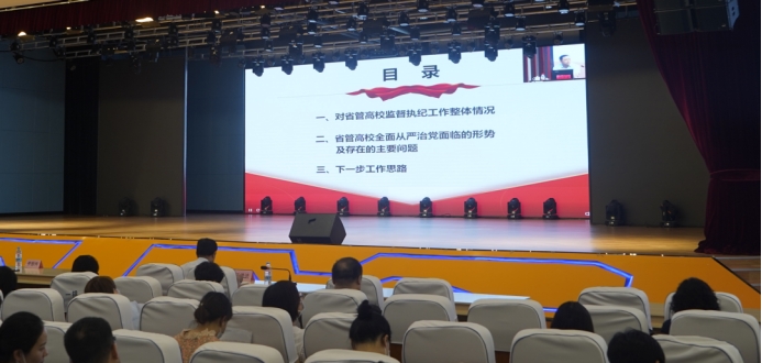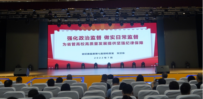 報告會上,劉衛東以《強化政治監督做實日常監督為省管高校高質量發展提供堅強紀律保障》為題作了專題報告。他站在中央、省委深入推進黨風廉政建設和反腐敗工作全局的高度,全面總結了當前省管高校監督執紀工作的整體情況,結合前期十一屆省委巡視整改以及高校紀檢監察工作實際,深入分析了省管高校全面從嚴治黨面臨的形勢,指出省管高校存在著學習貫徹習近平總書記關于高等教育的重要講話、指示批示精神和黨中央決策部署不到位,落實省委工作要求有差距;落實全面從嚴治黨戰略部署不到位,廉潔風險仍較突出;推動巡視反饋問題整改落實不到位,整改質量不高;對高校“一把手”的監督有待進一步增強;重點領域廉政風險多發;違反中央八項規定精神問題禁而不絕以及高校紀檢監察機構職能作用有待進一步發揮等亟需解決的問題。