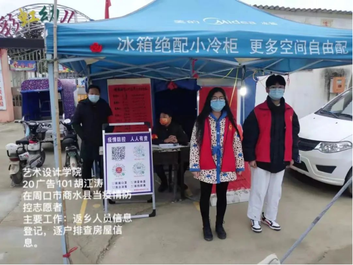 參與志愿服務的20級廣告101班胡江濤表示:通過志愿服務為家鄉疫情防控貢獻了自己一份微薄之力。服務的這些人都是叔伯長輩和父老鄉親,大家齊心協力共度時間,感受到群眾思想的進步、祖國的發展,生長在新時代感覺很幸福,相信我們一定能最終戰勝疫情。