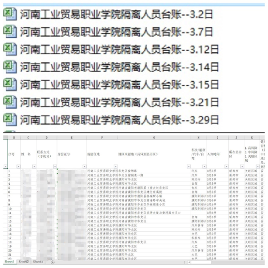 防控專員根據每日更新的中高風險地區名單及《外地市入鄭人員健康管理措施一覽表》,及時做好重點地區返回學生的健康碼、行程碼排查工作,建立重點地區返回學生及隔離學生臺賬,記錄其健康狀況及核酸檢測情況,做到一人一檔,密切追蹤,及時上報學生處、后勤處需要隔離管控的學生名單,做到管控對象準確精準,為學校防疫工作做出積極貢獻。