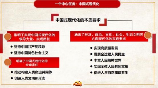 苦難輝煌著華章,新篇續寫再起航。追尋現代化是近代以來中華民族的光榮與夢想,實現中國式現代化是新時代中國共產黨人的責任和擔當。黨的二十大報告深刻闡述了中國式現代化的中國特色、本質要求和重大原則,發出了為全面建成社會主義現代化強國團結奮斗的動員令。五個中國特色明確了中國式現代化的奮斗目標,五項重大原則詮釋了中國式現代化的基本遵循,九個本質要求則提出了推進中國式現代化的具體要求。
